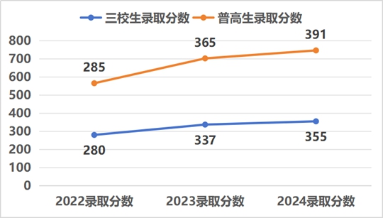 、诜诸惪荚嚺c普招錄取比例持續(xù)提升:2022年2.25:1,2023年3.01:1,2024年3.51:1。