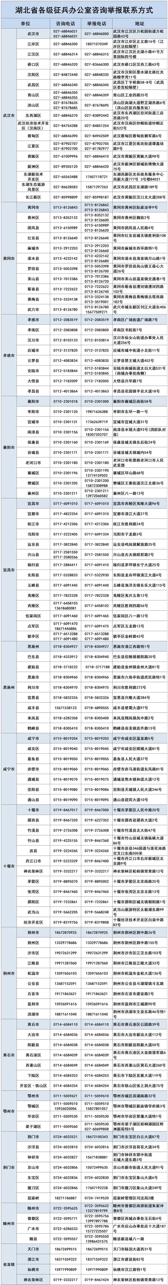 湖北省各級(jí)征兵辦公室咨詢舉報(bào)聯(lián)系方式