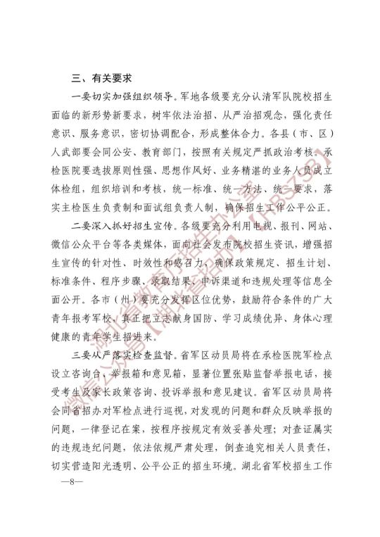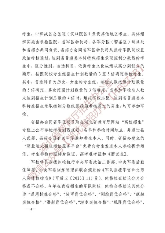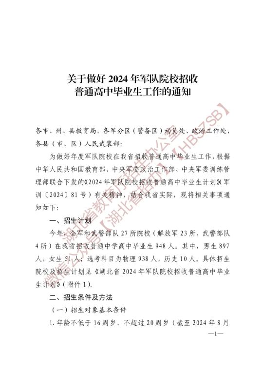 湖北:關(guān)于做好2024年軍隊(duì)院校招收普通高中畢業(yè)生工作的通知