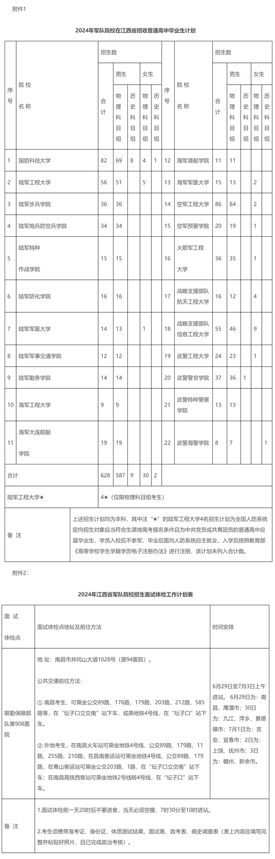 附件:1.2024年軍隊院校在江西省招收普通高中畢業(yè)生計劃