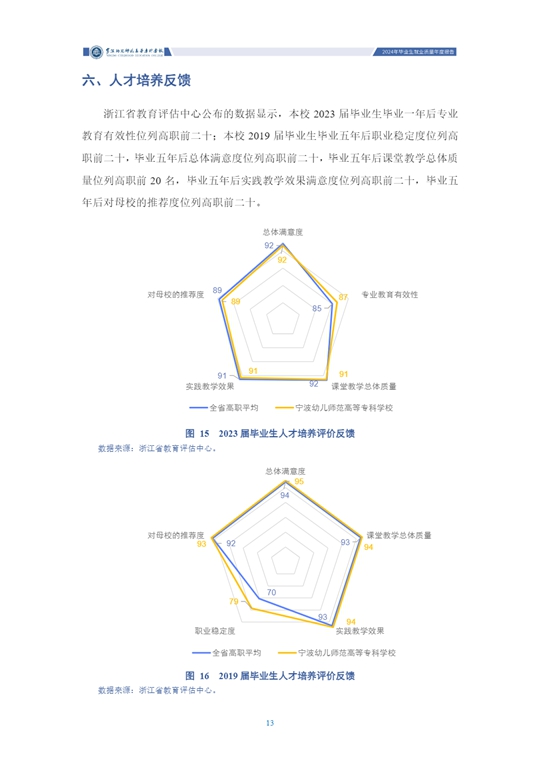 寧波幼兒師范高等?茖W(xué)校2024屆畢業(yè)生就業(yè)質(zhì)量年度報告