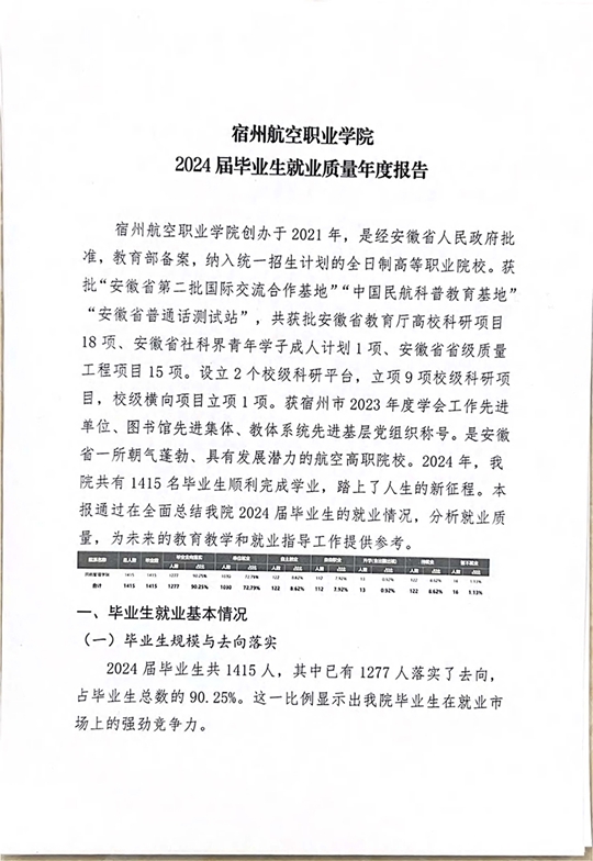 宿州航空職業(yè)學(xué)院2024屆畢業(yè)生就業(yè)質(zhì)量年度報(bào)告
