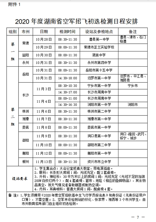 附件:1.2020年度湖南省空軍招飛初選檢測(cè)日程安排