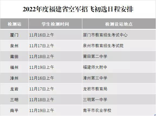 根據(jù)2022年度空軍招飛工作安排,11月16日至11月19日,空軍招飛局南京選拔中心將派初選組赴各地市,對報考空軍飛行學(xué)員的學(xué)生進(jìn)行檢測,相關(guān)通知已通過各地市教育招生部門發(fā)至各學(xué)校。