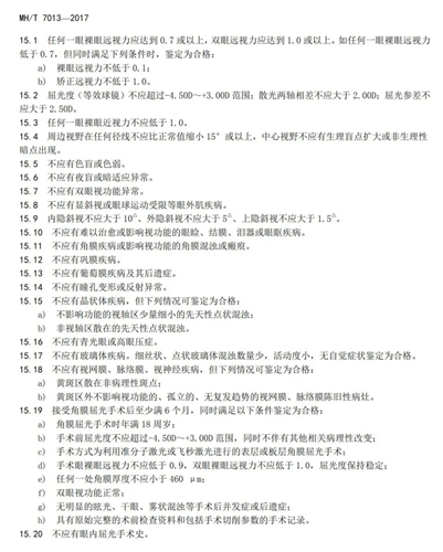 2017年公布的《民用航空招收飛行學(xué)生體檢鑒定規(guī)范》(MH/T7013-2017)中,針對民航招飛的多項(xiàng)體檢標(biāo)準(zhǔn)有所放寬,以最引人關(guān)注的“視力”要求為例——