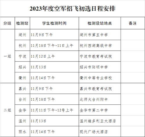 | 2023年度浙江省空軍招飛初選日程安排 |