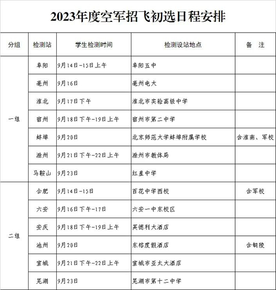 | 2023年度安徽省空軍招飛初選日程安排 |