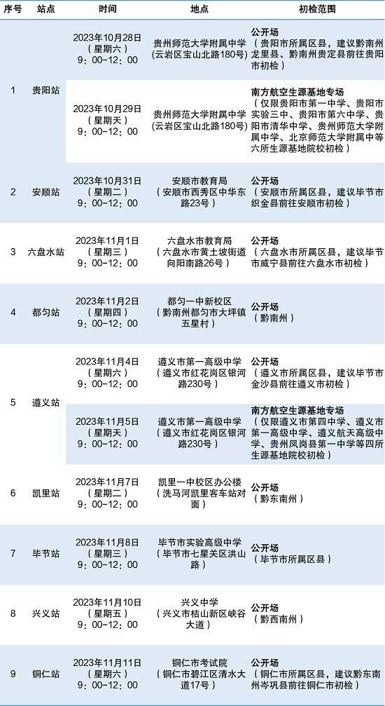 中國南方航空股份有限公司聯(lián)合南京航空航天大學(xué)、中國民用航空飛行學(xué)院在貴州開展校企合作招飛,現(xiàn)面向參加2024年全國統(tǒng)一高考的貴州高中畢業(yè)生招收飛行學(xué)員。初檢安排如下: