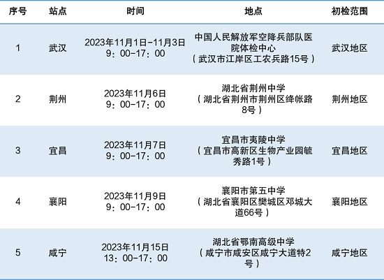 | 2024年度中國南方航空股份有限公司招飛湖北地區(qū)初檢安排 |