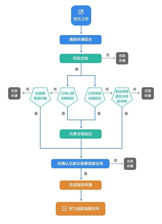 為幫助您在招飛選拔過程中節(jié)約時間和費用,便于您更好地備考,同時讓您有機會在更多的合格申請組合中選擇確認有效招飛申請,系統(tǒng)對部分環(huán)節(jié)的結(jié)論在特定情況下設(shè)定了結(jié)論共享。請注意,這里的結(jié)論共享特指申請組合之間共享。