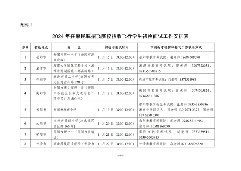 1.2024年在湘民航招飛院校招收飛行學(xué)生初檢面試工作安排表