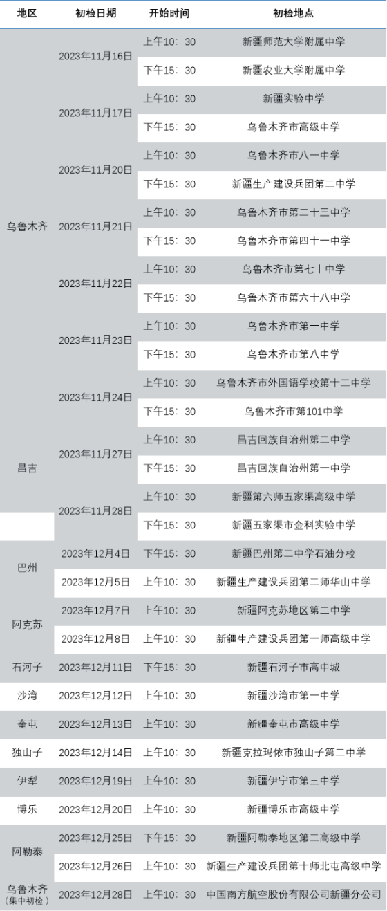 | 2024年度中國南方航空股份有限公司招飛新疆地區(qū)初檢安排 |