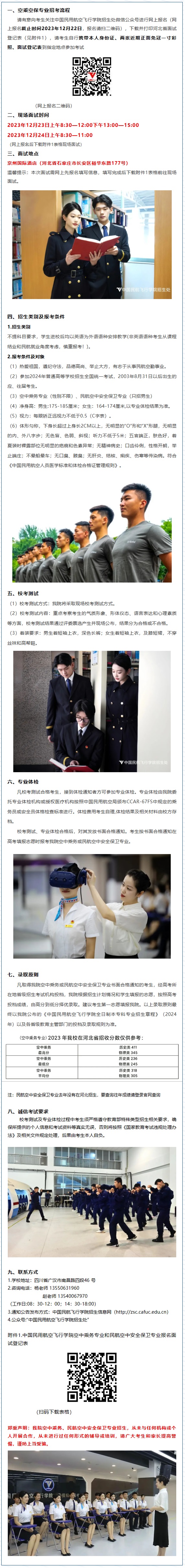中國民用航空飛行學(xué)院2024年在山東省招收空中乘務(wù)和民航空中安全保衛(wèi)專業(yè)學(xué)生通知