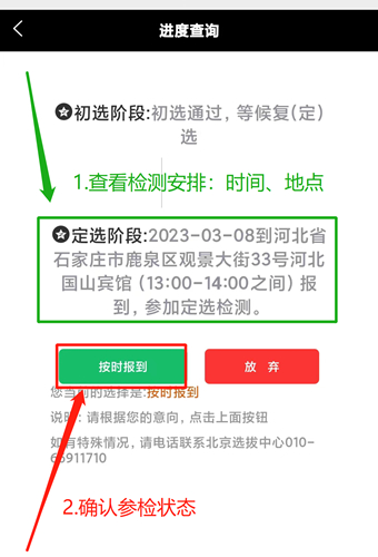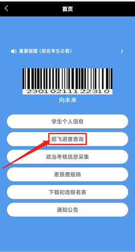 2023年3月18日至25日分8個(gè)批次進(jìn)行。北京選拔中心將通過華北招飛短信平臺(tái)進(jìn)行提醒,請(qǐng)保持預(yù)留手機(jī)開機(jī)并注意查收。接到短信后,登錄《空軍招飛綜合信息管理系統(tǒng)》(點(diǎn)擊此處登錄)按以下流程操作: