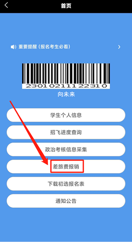 4.乘坐公共交通工具報(bào)到的,按軍校學(xué)員標(biāo)準(zhǔn)報(bào)銷往返路費(fèi)。請(qǐng)務(wù)必保留好有效乘車票據(jù),憑票報(bào)銷(火車報(bào)銷憑證為粉色或藍(lán)色紙質(zhì)報(bào)銷憑證,不是行程信息提示單),乘坐飛機(jī)的按火車票核算,需提供行程單或發(fā)票(不是登機(jī)牌)。路費(fèi)報(bào)銷僅支持農(nóng)業(yè)銀行儲(chǔ)蓄卡轉(zhuǎn)賬,請(qǐng)登錄《空軍招飛綜合信息管理系統(tǒng)》個(gè)人賬戶,點(diǎn)擊“差旅費(fèi)報(bào)銷”填寫農(nóng)行儲(chǔ)蓄卡卡號(hào)、開戶人姓名、開戶行名稱等信息(為確保信息采集準(zhǔn)確,請(qǐng)攜帶報(bào)銷用農(nóng)行儲(chǔ)蓄卡和開戶人身份證復(fù)印件。如登錄后無“差旅費(fèi)報(bào)銷”欄目,請(qǐng)直接刷新當(dāng)前登錄頁(yè)面重新加載即可)。待我部審核后,通過銀行轉(zhuǎn)賬報(bào)銷。差旅費(fèi)報(bào)銷信息填寫流程如下: