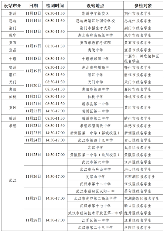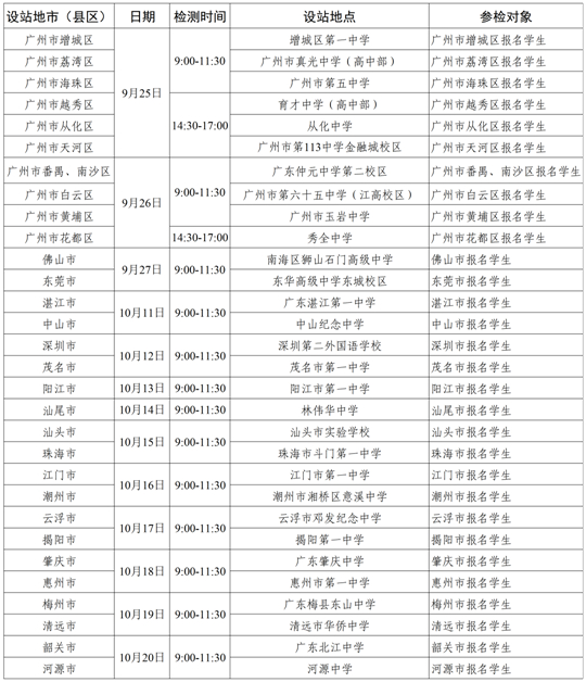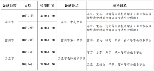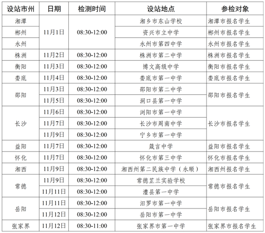 未設站地市、州(區(qū)、縣)報名學生根據(jù)自身實際情況合理選擇時間和設站地點參檢。