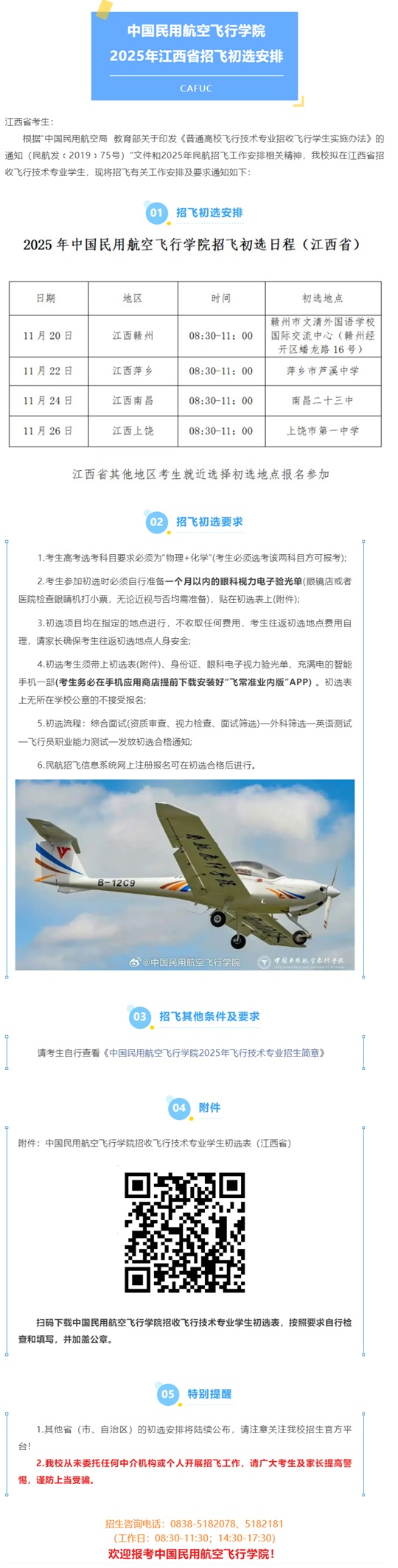 中國(guó)民用航空飛行學(xué)院2025年江西省招飛初選安排