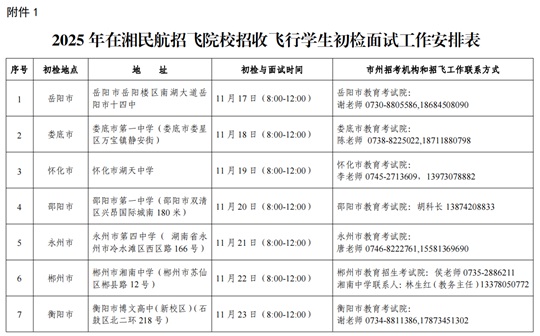 附件:1.2025年在湘民航招飛院校招收飛行學(xué)生初檢面試工作安排表
