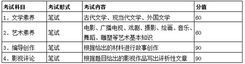 主要考查考生對(duì)該專業(yè)所涉及的電影、廣播電視、戲劇、攝影、繪畫、音樂、舞蹈、雕塑等藝術(shù)基礎(chǔ)知識(shí)與技能的掌握程度。