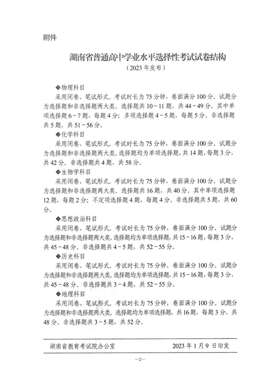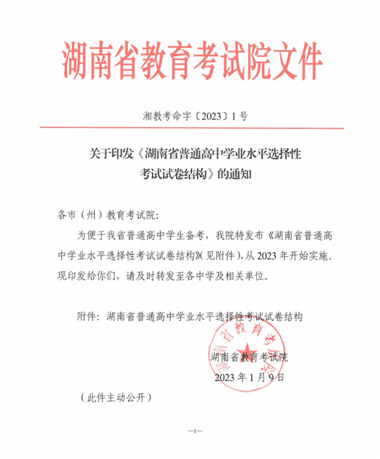 關(guān)于印發(fā)《湖南省普通高中學(xué)業(yè)水平選擇性考試試卷結(jié)構(gòu)》的通知