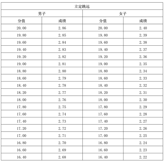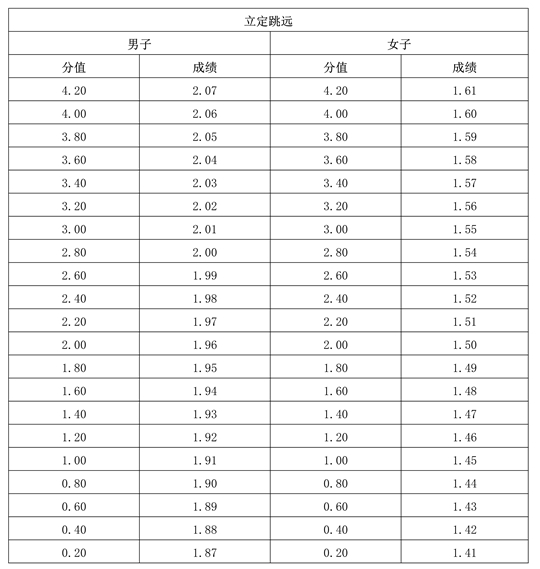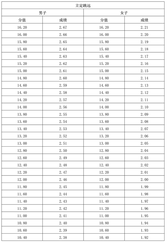 (二)立定跳遠(yuǎn)評(píng)分表(單位:米)
