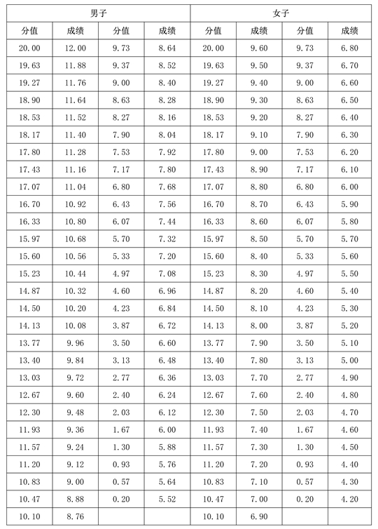 。ㄒ唬100米跑素質(zhì)考試評(píng)分表