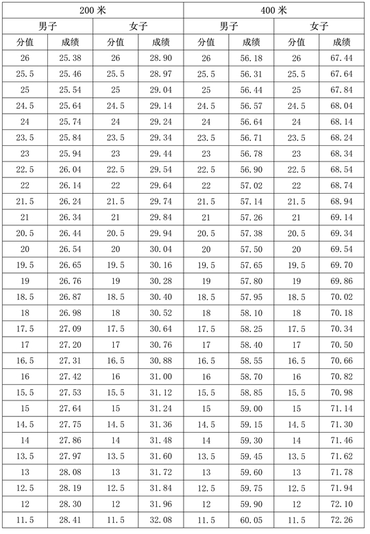1.200米、400米專項(xiàng)評(píng)分表(單位:秒)