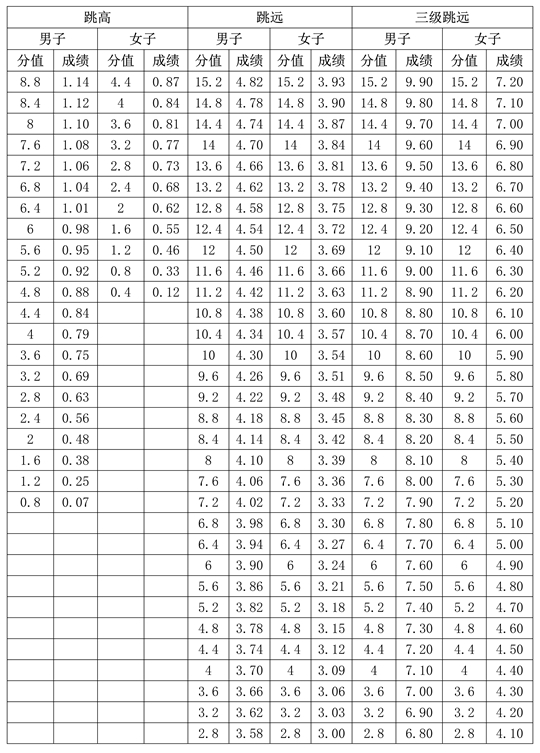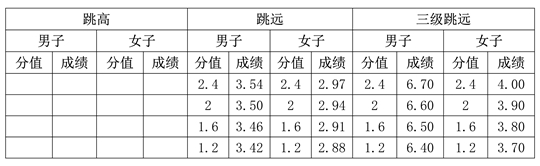 3.跳高、跳遠(yuǎn)、三級(jí)跳遠(yuǎn)專項(xiàng)評(píng)分表(單位:米)