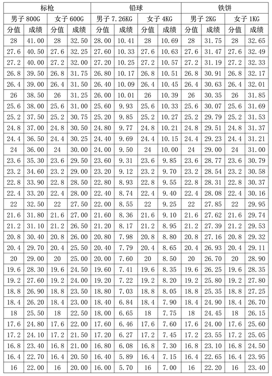 4.標(biāo)槍、鉛球、鐵餅專項(xiàng)評(píng)分表(單位:米)
