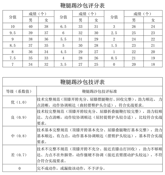 A.左、右鞭腿踢沙包評(píng)分標(biāo)準(zhǔn)(10分)