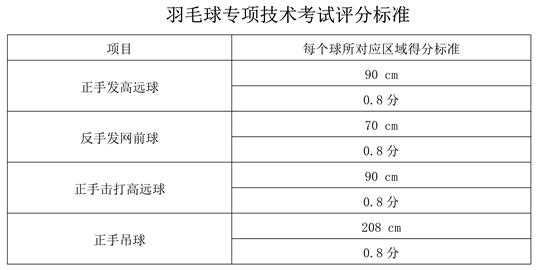 如圖所示?忌诎l(fā)球區(qū)用上手、勾手發(fā)球或跳發(fā)球10次,要求所發(fā)出的球有一定的速度和力量,對(duì)飛行速度慢、力量小的發(fā)球,則在相應(yīng)得分中扣去0.3分