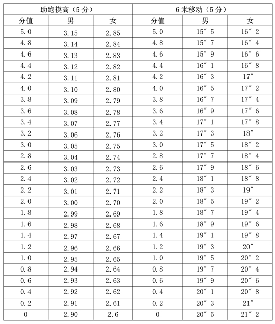 1.助跑摸高、6米移動(dòng)評(píng)分表