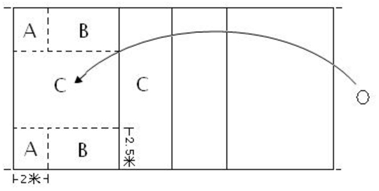 。3)發(fā)球落點(diǎn)在前場(chǎng)C區(qū)內(nèi)得0.6分;