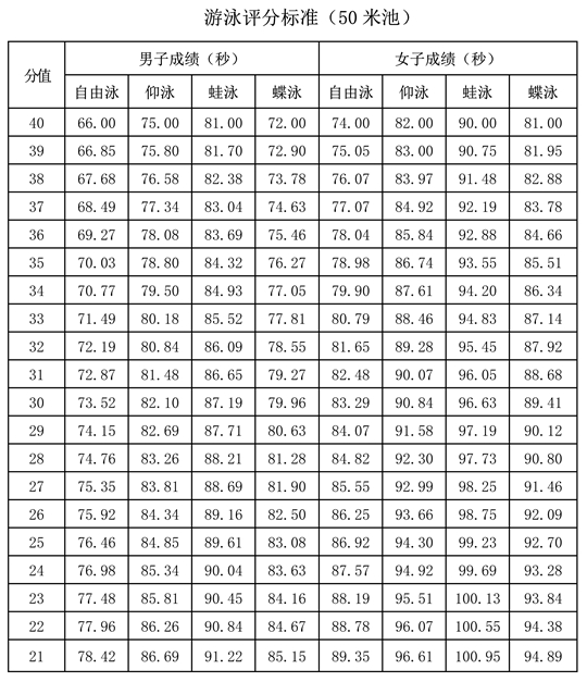 成績計(jì)取以成績對(duì)應(yīng)的得分計(jì)取,若成績?cè)谠u(píng)分標(biāo)準(zhǔn)的兩個(gè)相鄰分值之間,則計(jì)取其中較低的分值。
