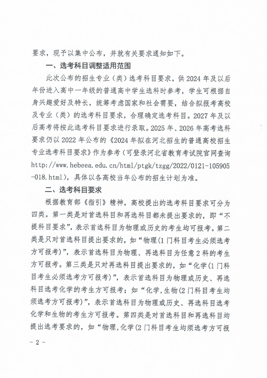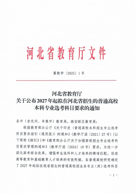 | 關于公布2027年起擬在河北省招生的普通高校本科專業(yè)選考科目要求的通知 |
