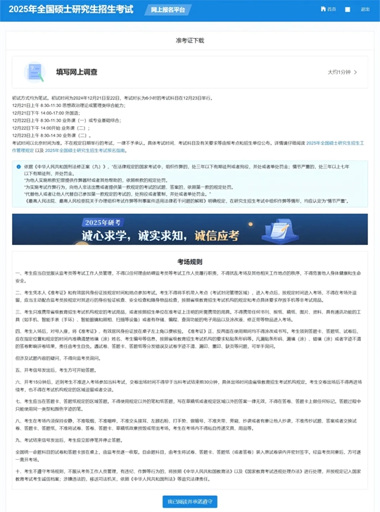 進(jìn)入研招網(wǎng)報(bào)平臺(tái)首頁(yè)后,你將看到初試時(shí)間提醒、考場(chǎng)規(guī)則等內(nèi)容,這個(gè)頁(yè)面上的提示要認(rèn)真閱讀!