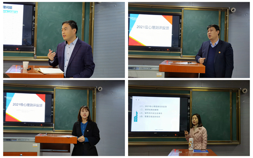 會(huì)上,學(xué)生工作處處長張利軍總結(jié)開學(xué)至今學(xué)工系統(tǒng)有序推進(jìn)大學(xué)生心理健康工作的思路和舉措,并就如何提高認(rèn)識(shí)、密切配合、抓早抓細(xì)、服務(wù)學(xué)生做了安排部署;馬克思主義學(xué)院副院長任靜介紹了大學(xué)生心理健康教育工作的開展推進(jìn)情況和2021級新生(專升本)心理測評工作開展實(shí)施情況;大學(xué)生心理健康中心教研室主任張亞男解讀了2021級新生(專升本)心理測評報(bào)告。