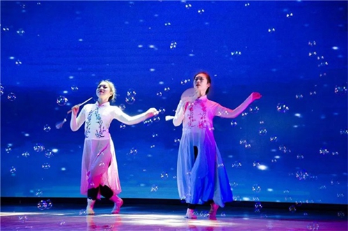 進(jìn)入下半場,節(jié)目更是精彩紛呈,讓人目不暇接。由藝術(shù)團(tuán)國標(biāo)隊(duì)韓錦桐、安佳琦等同學(xué)帶來的拉丁舞《shadow of the sun》,用身體線條融入溫柔多情的倫巴舞,給觀眾帶來美的享受和青春的活力。藝術(shù)團(tuán)舞蹈隊(duì)艾蕊、李靜雅等同學(xué)帶來的群舞《陌上花開》,描繪了“春風(fēng)春雨春色,新年新歲新景”的陽春三月和風(fēng)蕩蕩,楊柳依依的美麗畫卷;由劉文碩、劉佳林等同學(xué)帶來的合唱《無與倫比的美麗》,與街舞隊(duì)同學(xué)們共同演繹了活力四射的青春感覺,此時(shí)場下熒光棒有節(jié)奏地?fù)]舞,場面壯觀。張志鑫老師古琴獨(dú)奏《流水》伴著劉軻、王航科老師書寫對聯(lián),急撥慢揉舒緩述,絲弦流露贊美情,古琴悅耳,墨香四溢,筆走龍蛇,為大家送上新春的祝福,讓觀眾品鑒了中華傳統(tǒng)藝術(shù)的香醇。