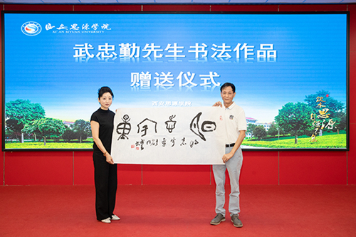 2021年6月10日上午,著名書法家武忠勤先生為西安思源學(xué)院贈送書法作品。西安思源學(xué)院校長周延波,校黨委書記馬勇,副校長管忠民、趙惠霞、巨永鋒、李雪榮,工會主席曾文,校長助理趙明宇、石建威出席活動。著名書法家、西安思源學(xué)院書法學(xué)專業(yè)業(yè)界導(dǎo)師武忠勤先生向?qū)W校贈送書法作品;顒佑晌膶W(xué)院院長梁瑜霞主持。