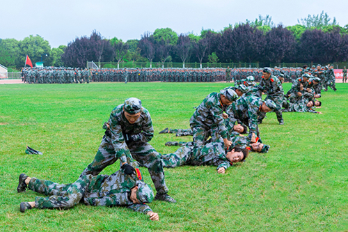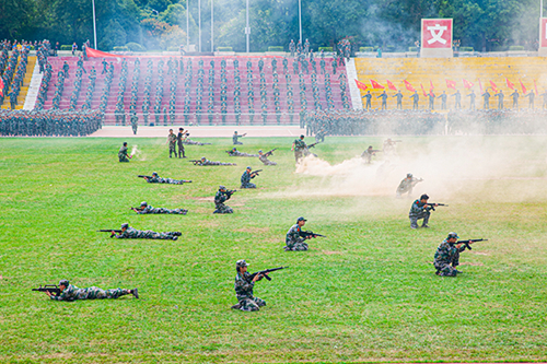 匯報表演環(huán)節(jié),隊列展示、擒敵拳、戰(zhàn)術、花樣隊列等科目依次登場。隊列展示方隊以整齊劃一的步伐展現(xiàn)了優(yōu)秀的單兵素質,健壯有力的臂膀仿似鐵鑄,緊緊焊死在鋼槍上。擒敵拳方隊動作鏗鏘,威風凜凜彰顯了威武不屈的氣勢。戰(zhàn)術方隊動作整齊、剛勁有力,體現(xiàn)了學兵們鋼鐵一般的意志。花樣隊列的3000余名學兵手持紅黃紙,在教官的哨聲下,方陣迅速變化,學兵們以整齊的步伐搭配手語操和舞蹈的柔美,為慶祝建黨100周年獻上最真摯的祝福。通過一系列戰(zhàn)術動作表演,展現(xiàn)出思源學子颯爽風姿。
