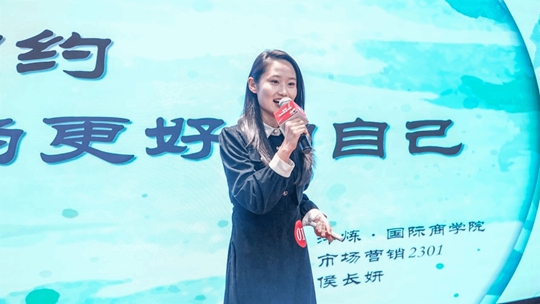 淬煉·國際商學院的侯長妍以《與阿信相約,成為更好的自己》為題,通過自己在校兩年間從主持、策劃新手到主持一姐再到學生團隊部長的蛻變歷程,精心設計內(nèi)容,主題鮮明,展現(xiàn)了學校賦予她的自信與成長價值。她傳達了一個核心觀念:在“阿信”,以學生發(fā)展為中心,每個人都有機會實現(xiàn)自我成長與蛻變,只要你勇敢站出來,終將閃耀。侯長妍以自身成長為主線設計的推文,在視覺與情感上深深打動了讀者與評委,贏得了現(xiàn)場觀眾的熱烈掌聲。