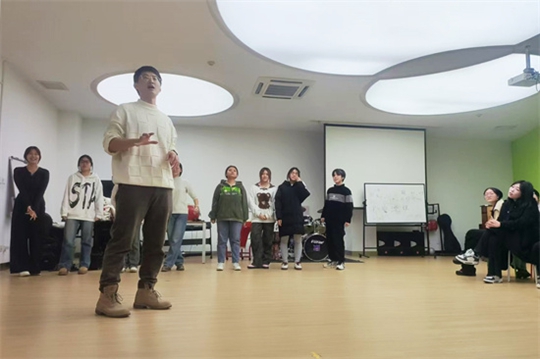 話劇團團課在每周三、四的晚上,在大活8號房的2個小時里,孫士碩和話劇團的50多名小伙伴一起學習表演、排練節(jié)目,也會開心地聊天。讓他感觸最深的是,在這里不僅僅是為了提升表演技能,更重要的是被一種溫和的氛圍包裹著,“這里允許所有天馬行空的想法,當你在表演課上演得不好的時候,沒有批評和指責,更多的是包容,老師也像個大孩子一樣溫柔!