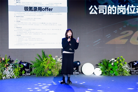 她是宋嘉佳,來自工商管理學院2021級市場營銷專業(yè)。參加學生年度盛典前不久,她剛剛簽約浙江極氪智能科技有限公司總部,是所在部門新招聘的5名員工中唯一的本科生。更令人驚喜的是,她在分享結(jié)束后,還意外收到了董事長胡建波發(fā)出的崗位邀約。