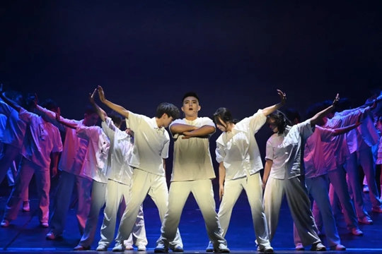 身為非藝術(shù)專業(yè)教育者,此劇于我而言,我看到的不只是這樣一部將非遺形意拳和音樂劇糅合在一起的劇目,更是看到了學(xué)生們在排練和演出過程中不知不覺地成長。在排練過程中,學(xué)生們揮灑汗水忍著勞累的堅(jiān)持,亦或者面臨諸多壓力之后的決然起舞,他們猶如熱忱的文化傳承者,在形意拳這一非遺的浩瀚蒼穹中尋覓自我價(jià)值。他們流淌的汗水,是對傳統(tǒng)文化的忠誠守護(hù);面對疲憊壓力的奮起,是對非遺精神的堅(jiān)定傳承。每一份堅(jiān)持與努力,都似在歲月琴弦上撥響奮進(jìn)音符。所有的所有,都在這盛大的演出中,變成春風(fēng)細(xì)雨,變成縷縷微風(fēng),變成學(xué)生成長最好的養(yǎng)料,讓學(xué)生成了更好的自己。