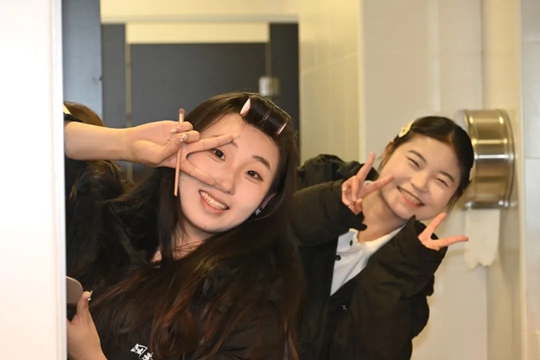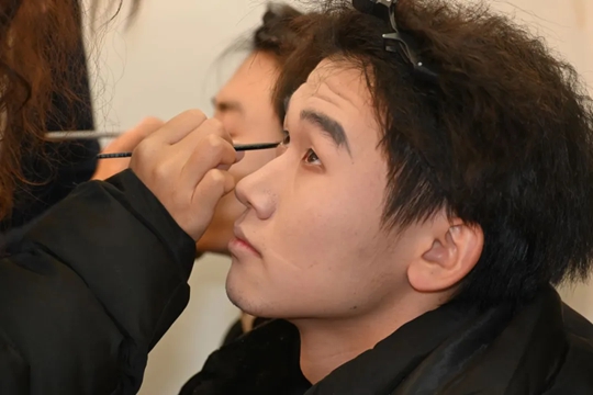 在每次演出時(shí),臺上的光鮮亮麗是可見且可感的,但《風(fēng)起形意》這部音樂劇的輝煌成就背后,是一群默默無聞的幕后英雄,他們以專業(yè)和熱情為這部戲保駕護(hù)航著。編劇侯宇鑫老師用將近半年的時(shí)間進(jìn)行劇本打磨,為舞臺呈現(xiàn)出最好的效果,進(jìn)行了六次改稿;導(dǎo)演團(tuán)隊(duì)范志遠(yuǎn)老師、李毓老師、王姚楠老師和李曉劍老師帶領(lǐng)演員們從圍讀劇本到落地排練,付出了極大的心血,當(dāng)燈光亮起,舞臺上的每個(gè)動作都有他們的精心設(shè)計(jì)。在演出過程中,他們是最緊張的——燈光、音響、調(diào)度,舞臺上的一切都需要他們進(jìn)行把控,而他們在演出后的感動、幸福與欣慰,同樣也是最多的;舞美團(tuán)隊(duì)田帥老師帶著舞美創(chuàng)意工作室的同學(xué)們精心設(shè)計(jì)舞臺布景,將形意拳的古樸與音樂劇的現(xiàn)代感完美融合,創(chuàng)造出一個(gè)既真實(shí)又夢幻的舞臺空間,在簡約的舞臺空間里實(shí)現(xiàn)了最大限度的場面組織方案,通過傾斜的高臺將演區(qū)進(jìn)行切割,也是晉中信息學(xué)院演出歷史上從未有過的;服化團(tuán)隊(duì)則由呂小靜老師、郭麗琨老師領(lǐng)銜,服裝創(chuàng)意工作室和美學(xué)設(shè)計(jì)工作室的同學(xué)們通過對服裝和化妝的細(xì)致打磨,讓每個(gè)角色的形象更加鮮明,不僅展現(xiàn)了角色的個(gè)性,也傳遞了形意拳的文化精髓;聲光工作室的老師和同學(xué)們則是一次又一次地確定著舞臺上的燈光點(diǎn)位,每一次燈光點(diǎn)的輸入與保存,都是對藝術(shù)的無限熱愛;宣發(fā)團(tuán)隊(duì)則通過文字、圖片等多渠道的宣傳策略,讓更多人了解并期待這部作品,為演出的成功打下了堅(jiān)實(shí)的觀眾基礎(chǔ),他們通過文字與圖片,帶領(lǐng)著大家重回那些或感動或欣喜的瞬間……