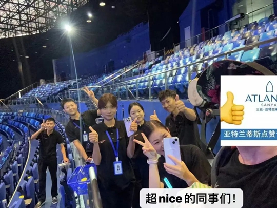 在三亞亞特蘭蒂斯度假區(qū),丁梓晨主要負(fù)責(zé)亞特蘭蒂斯獨(dú)家定制駐場(chǎng)秀《C秀》的劇場(chǎng)運(yùn)營(yíng)管理。幾乎沒有過害怕生疏的階段,從崗前培訓(xùn)開始,領(lǐng)導(dǎo)與伙伴的耐心幫助給予了她許多自信,接待了許多來劇場(chǎng)觀看演出的客人。
