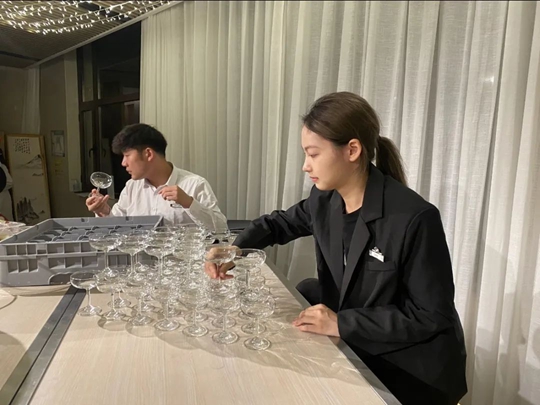 “令我特別興奮的是調(diào)制G.O甄選酒水。這項(xiàng)工作內(nèi)容需要G.O自己根據(jù)客人的心情、喜好和要求來調(diào)酒。每次我調(diào)制的甄選飲品得到客人的稱贊時(shí),會(huì)深刻感受到自己工作的價(jià)值!敝炝岬墓ぷ髟诿繄(chǎng)show之前是最為繁忙的,她一邊調(diào)酒,一邊要與不同的客人主動(dòng)交流分享,分享自己的故事,傾聽客人的經(jīng)歷。