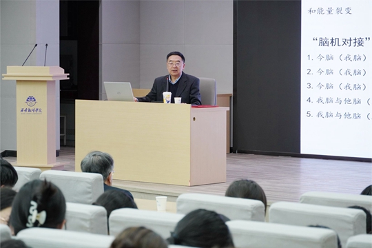 他指出,經(jīng)典閱讀有三重境界:第一境是“在文本內(nèi)部完成的充分循環(huán)”;第二境是“把這一經(jīng)典文本置于與其他‘文化經(jīng)典’的對質(zhì)中進(jìn)行理解”;第三境是“將經(jīng)典置于與‘其他文化’經(jīng)典的對質(zhì)中展開理解”。他強(qiáng)調(diào),不同的經(jīng)典有不同的作用,精讀專業(yè)經(jīng)典可正門徑,博覽百科經(jīng)典可廣見聞,研讀科學(xué)經(jīng)典可訓(xùn)練思維,神游古今中外經(jīng)典可啟迪智慧。他希望同學(xué)們能夠以閱讀為基石,不斷豐富自己的內(nèi)在世界,努力成長為具有獨(dú)立思考能力和創(chuàng)新精神的人才。講座歷時兩個多小時。李浩教授旁征博引、以“腦機(jī)對接”拓展了文科學(xué)習(xí)的思路,贏得陣陣掌聲。