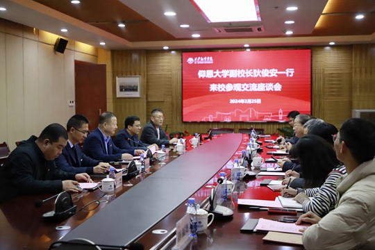 參觀結(jié)束后,雙方在會議室進(jìn)行了交流座談。西安翻譯學(xué)院黨政辦公室主任劉軼、教學(xué)質(zhì)量監(jiān)控與評估處處長柳國勇、學(xué)生處副處長馬海洋、宣傳部副部長汪杰參會。