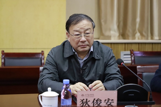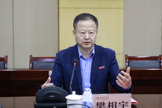 樊相宇致歡迎辭。他首先代表西譯對狄俊安一行的到來表示熱烈歡迎,并詳細(xì)介紹了學(xué)校辦學(xué)理念、人才培養(yǎng)模式、專業(yè)特色等方面的情況。他指出,近年來,西譯持續(xù)深化教育教學(xué)改革,始終堅(jiān)持以學(xué)生為中心、以立德樹人為根本任務(wù)、以產(chǎn)出為導(dǎo)向的教育理念,并通過增加教學(xué)資源投入、加強(qiáng)多領(lǐng)域人才引進(jìn)、提高中青年教師學(xué)歷、完善教師結(jié)構(gòu)體系等措施,切實(shí)推進(jìn)了學(xué)校教育教學(xué)質(zhì)量和水平的提升。樊相宇表示,在學(xué)校審核評估評建工作中,要重視頂層設(shè)計(jì)、理解指標(biāo)內(nèi)涵,合理進(jìn)行內(nèi)部結(jié)構(gòu)設(shè)計(jì);要多方論證并制定優(yōu)化提升方案,通過對規(guī)模、結(jié)構(gòu)、質(zhì)量、效益的量化模型分析,全力推進(jìn)學(xué)校內(nèi)涵化發(fā)展和高質(zhì)量發(fā)展。他希望,通過經(jīng)驗(yàn)交流和理念分享,能夠促進(jìn)兩校取長補(bǔ)短、相互學(xué)習(xí),促進(jìn)雙方共同發(fā)展和進(jìn)步。